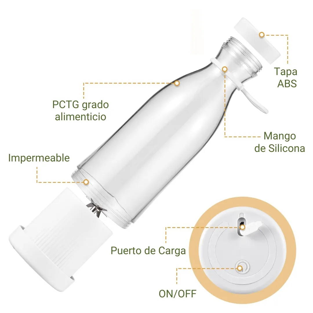 ¡Viaja sin preocupaciones! Es la compañera perfecta para tus viajes. Es ligera, compacta y fácil de llevar en tu mochila o equipaje. Ya sea que la uses como botella de agua o licuadora, podrás disfrutar de bebidas saludables en cualquier parte del mundo.